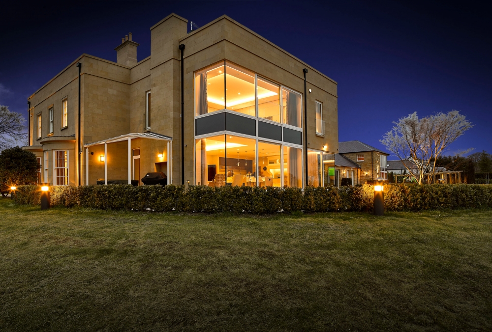 When creating a new home with a classical appearance, it is vital that the property seamlessly fits within its setting. For this project, Des Ewing Residential Architects selected Witton Fell sandstone, a material historically used in local properties. The sandstone is set atop a matching granite base for durability. Specialist stonemasons McConnell & Sons assisted in crafting an appearance that harmonises with the landscape and suits the property's classical style.